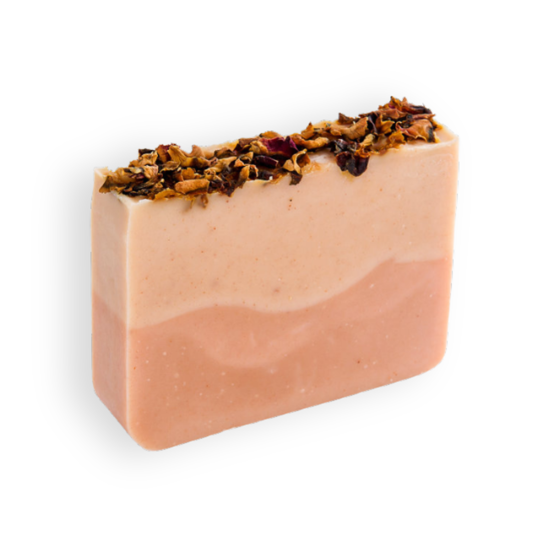 Woda demineralizowana, Zmydlone: Oliwa z oliwek, Olej kokosowy, Olej palmowy, Masło Shea, Olej ze słodkich migdałów, Olej rycynowy, Olejek eteryczny May Chang, Olejek eteryczny pomarańczowy, Francuska glinka czerwona, Francuska glinka różowa, Płatki róży damasceńskiej, Cytral, Limonen, Linalol.